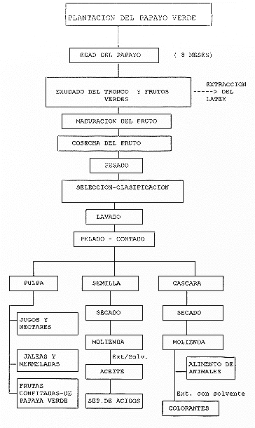 Para el aprovechamiento integral de la Papaya se seguirá el siguiente flujograma.