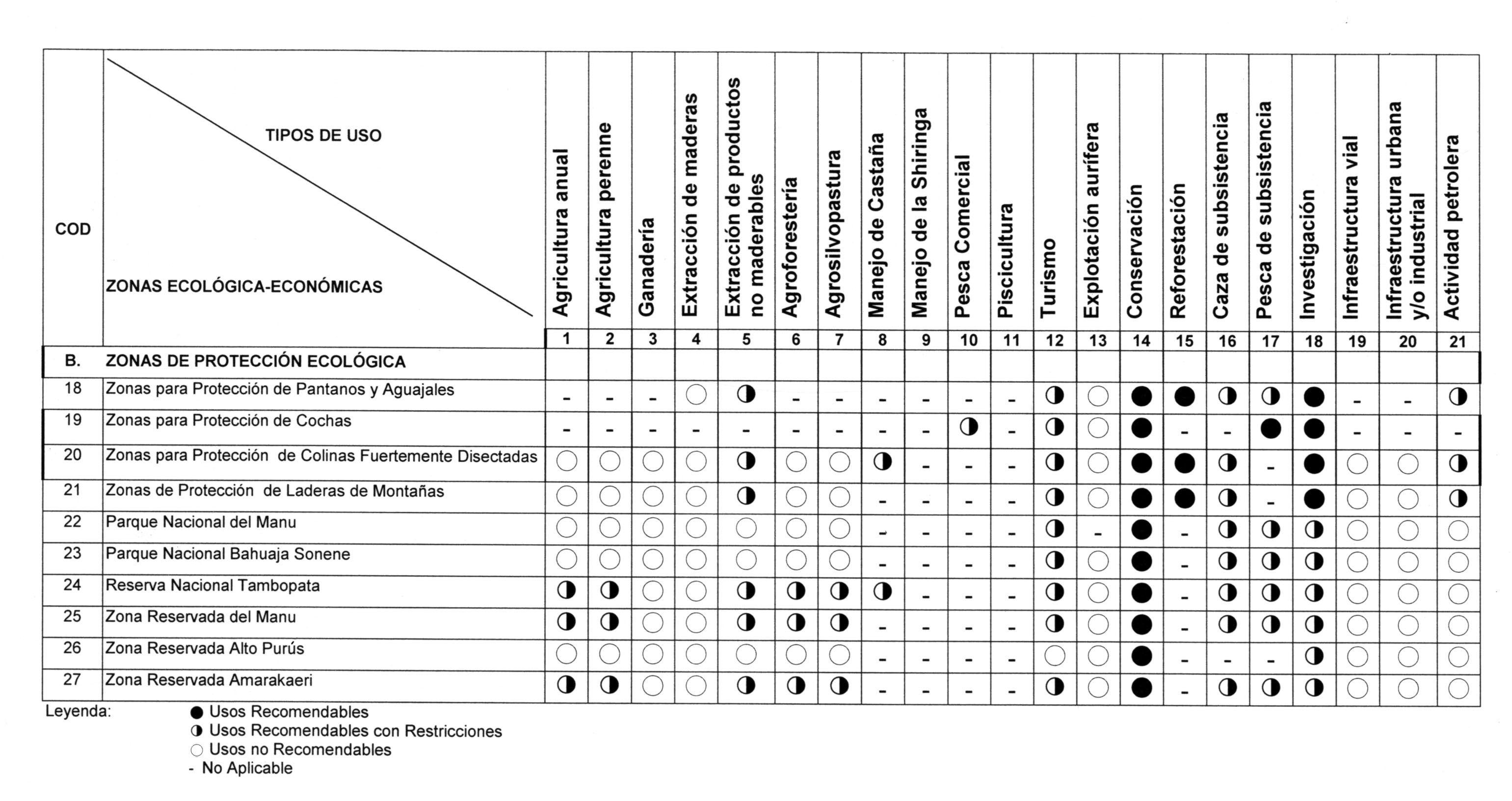 como con las categorías establecidas por Ley, en la Región Madre de Dios