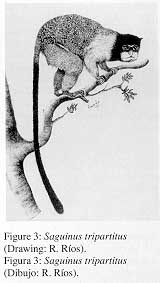 HERSHKOVITZ (1977) y THORINGTON (1988) sostienen que S. tripartitus se encuentra en el nor-oriente peruano, entre los ríos Napo y Amazonas en el sur y el río Putumayo en el norte y en las partes bajas de la margen derecha del río Napo. Sin embargo, no se ha observado esta especie en las exploraciones realizadas entre 1982 y 1989 en los afluentes de la margen izquierda de los ríos Amazonas y Napo. Los únicos registros que se poseen corresponden al área comprendida entre los ríos Curaray y Napo. Como conclusión estimamos que el rango de distribución de S. tripartitus sería mucho más restringida que el sostenido por los autores antes mencionados.