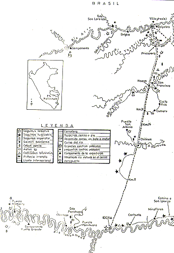 Estos resultados, las observaciones de Soini e informaciones de los lugareños conocedores de la fauna, indican que C. c. rubicundus tiene una amplia distribución en la cuenca del Tapiche, siendo particularmente abundantes en el Río Blanco. Un informante indicó que la margen occidental del Blanco por falta de especies maderables ha permanecido intocada, consecuentemente allí abunda el huapo colorado. Además, Cacajao está presente también en otras áreas de la margen oriental del Río Ucayali y Amazonas en Loreto. Por ejemplo, Soini (comunicación personal) vio un grupo en la Quebrada Blanco, afluente del Río Tahuayo (Fig. 1); otro investigador me informó la presencia de la especie a varias millas al interior de los bosques de Jenaro Herrera (R. Castro, com. per.). Por consiguiente, el km de distribución de Cacajao en el Perú abarca los bosques inundables al Este de los Ríos Ucayali y .Amazonas en Loreto.