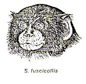 Cuidado de las crías. El cuidado y desarrollo de un infante macho, nacido en la manada de estudio el 24-09-81 por la mañana, o durante la noche anterior, fueron observados por intervalos de 3 días, desde el primer día de nacido hasta la edad de 3,5 meses. Durante la breve sesión en que la manada fue observada de cerca en el primer día, la cría estaba siendo cargada por la madre. El macho dominante, y por ende el supuesto padre de la cría, fue visto acercarse a la cría dos veces para despiojarla brevemente, con la obvia intención de tomar la cría a su espalda. En ambas ocasiones la madre lo repelió mordiéndolo. No obstante, 7 minutos más tarde, la madre transfirió la cría a él, pero volvió a recuperarla casi de inmediato, y la cría permaneció en la espalda de su madre por el resto de la sesión de observación (35 min). Esto sugiere que en S. fuscicollis silvestres podría comúnmente haber un período inicial, de por lo menos varias horas, durante el cual sólo la madre carga las crías.