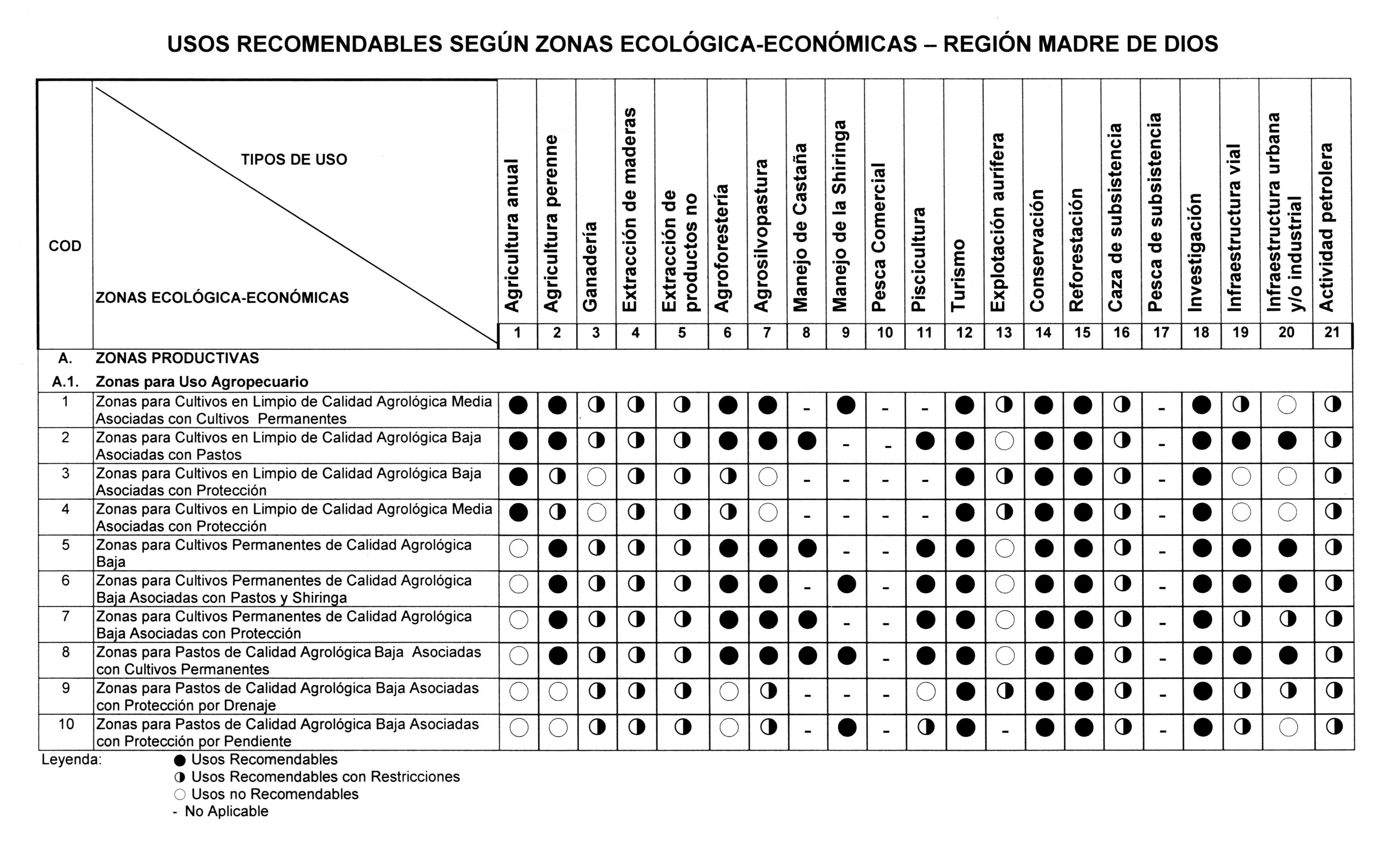como con las categorías establecidas por Ley, en la Región Madre de Dios